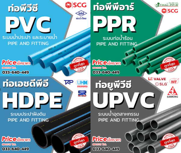 ท่อ PVC, UPVC, ท่อ PPR, ท่อ PB, ท่อ PP, HDPE, ท่อ PE, ท่อ EMT, IMC