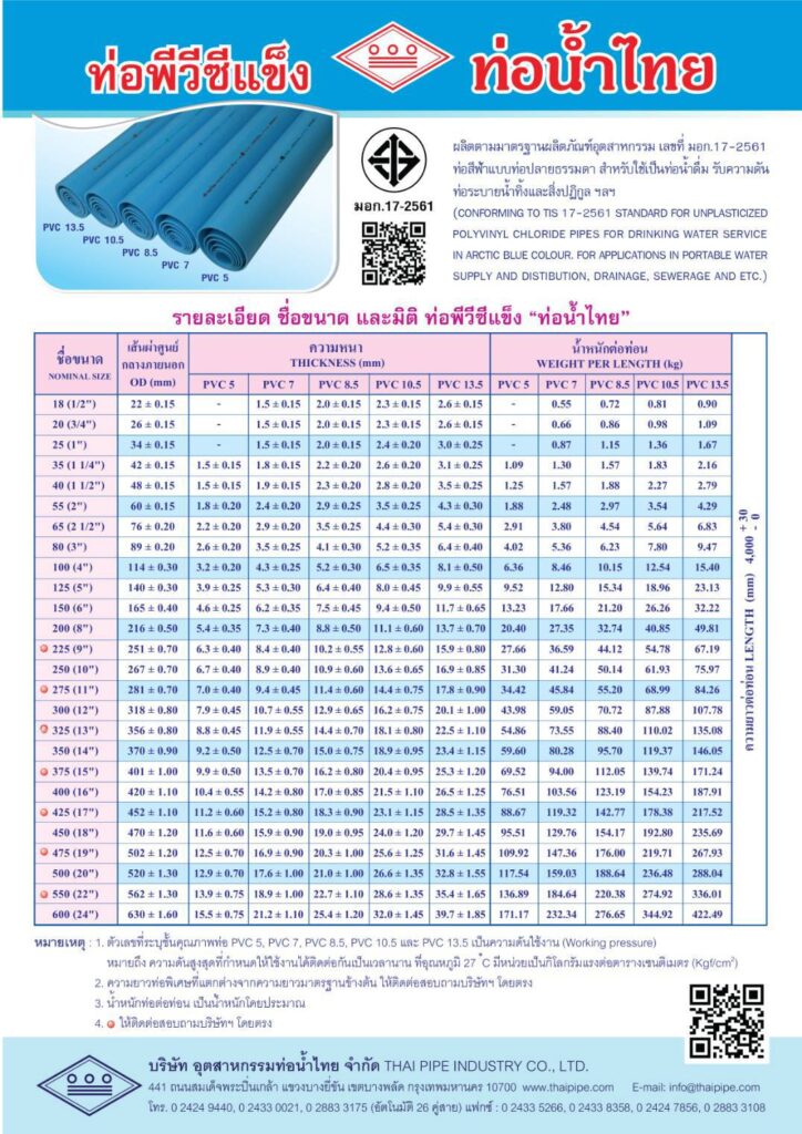 ตารางขนาดท่อPVC - ขนาดท่อพีวีซีสีฟ้า, ท่อสีฟ้า